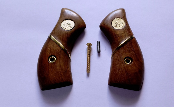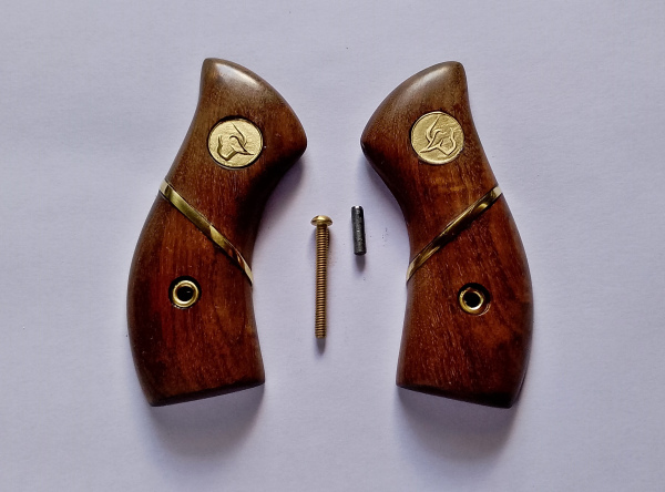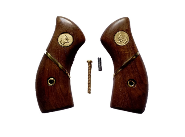 Handle, stock, super luxury grip, for Taurus revolvers, developed in high quality noble wood (Brazilian Ebony/ Genuine Pau Ferro wood) with natural wood finish, without addition of chemistry, or coloring. With polished brass finishes and screw! Ideal for concealed carrying, due to its small size! Exclusivity!